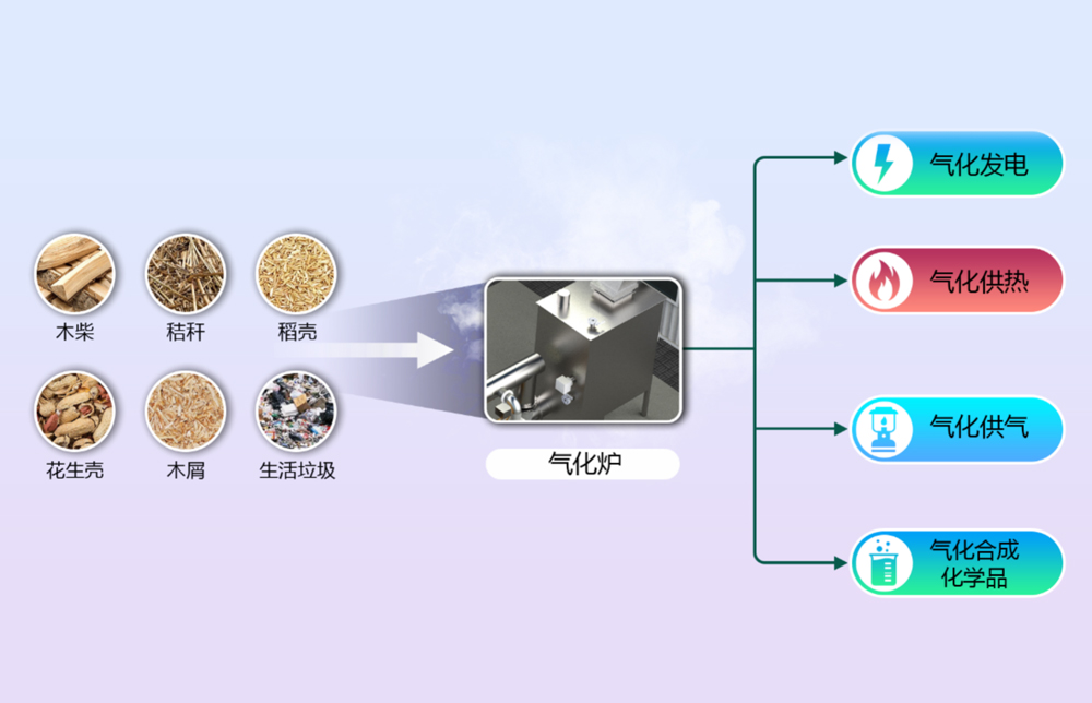 氣化爐的原料來源廣泛,各種農林廢棄物、一般生活固廢粉碎干燥后均可利用。氣化爐的設計既環保又無煙,由氣化爐生成的可燃氣,可直接替代天然氣、柴油、煤炭等能源,屬于綠色新能源。氣化技術可用于供氣、供暖、發電和合成化學品,實現了可再生能源開發利用、無害化處理及資源再利用協同的要求。